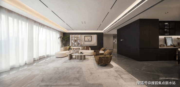 1、270°全景舱会客厅,让日常成为风景。三面采光,最大限度地享受自然和光线。无论是晨起的一杯咖啡,还是傍晚的慵懒时光,270°环幕视野和约36㎡的厅区都能将城市天际线与园区绿意框成一副IMAX级动态风景画。