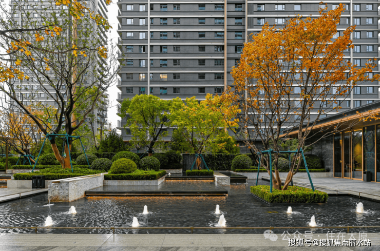 而太原瑞府的答案,远不止于此。眼前这处立体水景,已远非效果图的简单复刻—,它比效果图更生动、更有声。设计巧妙利用多层台阶,让清澈活水自高处跌落,形成潺潺小瀑。