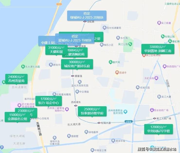 阅湖之星,即中建三局吴江太湖新城4号地块项目,位于太湖新城笠泽西路南侧、夏蓉街西侧。2023年5月29日,中建三局&吴江滨湖投资以总价156246万元竞得,成交楼面价17681元/平,溢价率1.03%。