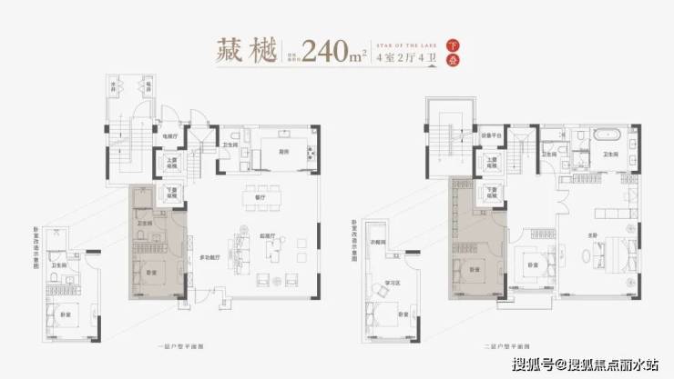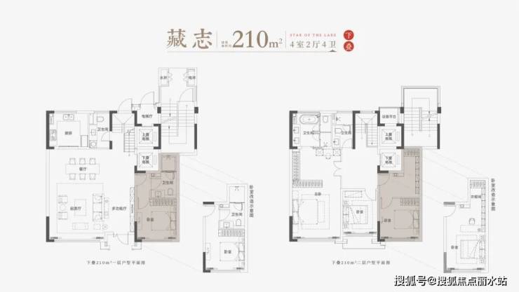 阅湖之星主要打造建面约149-240㎡洋房、叠墅产品,目前共曝光6大户型: