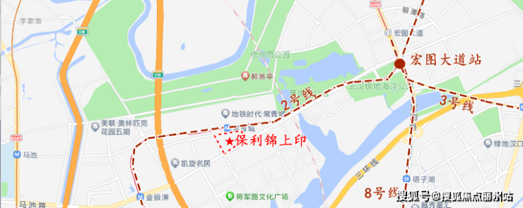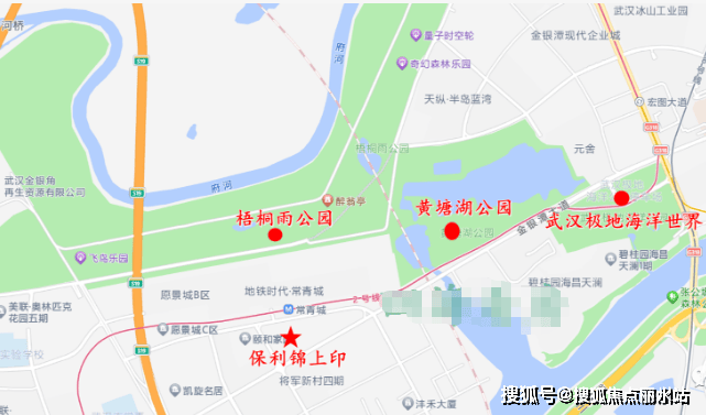 保利锦上印位于金银潭大道与将军二路交汇处,楼市划分属于金银潭板块,行政划分属于东西湖区。项目距离三环线约1.4公里,距离二环线约4.5公里,属于三环外。