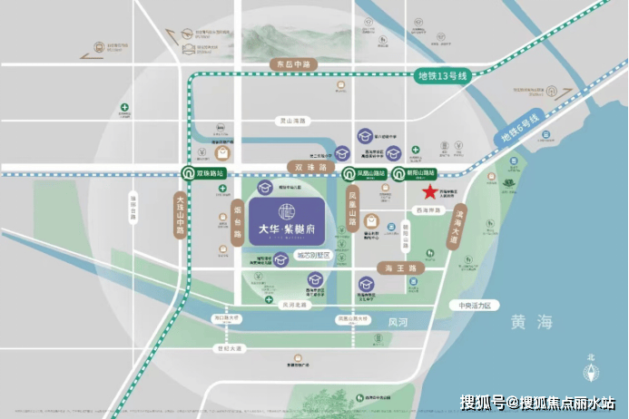 便利交通:三大地铁口(13号线双珠路站、6号线凤凰山路站、规划23号线朝阳山路地铁口),均在项目500米左右的距离,双主干道(城市级黄金主轴双珠路、海王路);?三大医疗:西海岸区立医院、人民医院、清华大学北方医疗中心(在建,项目南侧800米);