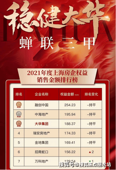 大华集团,1988年成立于上海,销售权益金额连年稳坐上海前三,一座上海城半壁大化城,约每100个上海人,其中就有一个住在大华;
