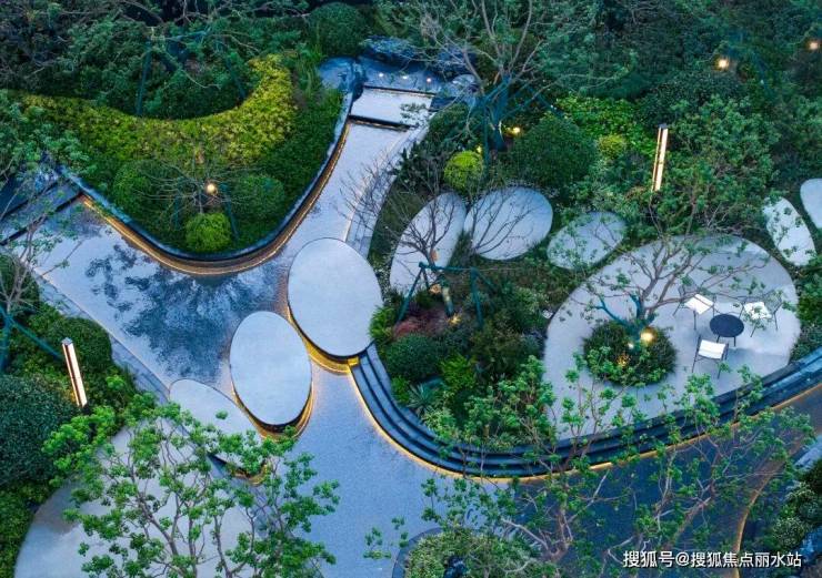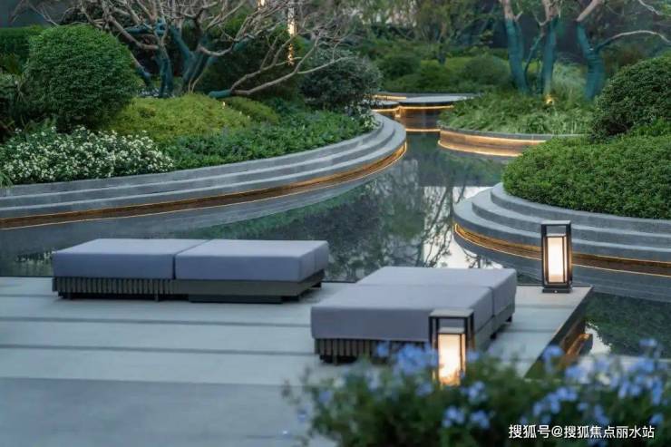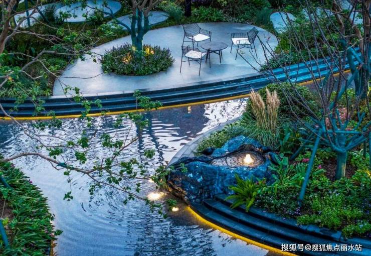 大面积灵动的水景,精致的风雨连廊,全冠选种的丰富林木和绿植,都能看出园林的高档次感。
