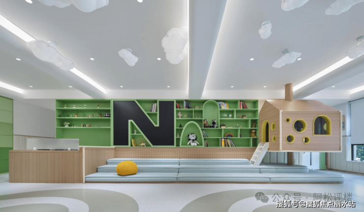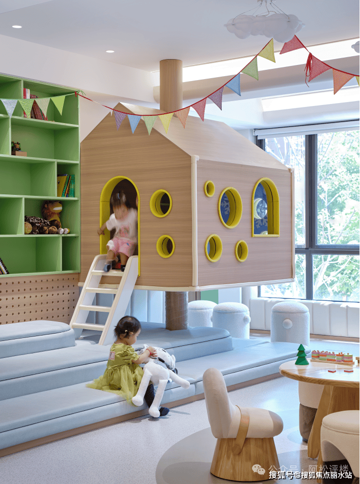 二楼的童梦乐园,是孩子的室内游乐场,四点半学堂配置有3个托育班。