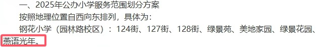 刚刚出炉不久的青山区2025年中小学对口划片情况显示,联投燕语光年已经提前锁定了钢花小学、钢城八中。(备注:楼盘学区情况由教育局划片确定,每年均存在调整可能性,具体以交付之后当年划片为准)