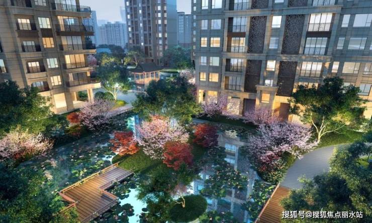 星河湾最出彩的设计在其水景园林,2.65万方的占地面积中,规划设计的水景面积超4400㎡,相当于牺牲了一栋楼来打造水景,换来的是包围着8栋楼形成一个浩瀚的水系,几乎每一栋都像是从水中生长出来的,湖楼相应,互为风景。