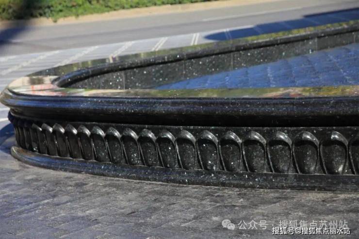 水景基座甄选巴西绿钻石材打造,与玉兰门庭的 14 种奢石形成呼应。石材的天然肌理与水波光影交织,搭配大门土耳其月光米黄石材、景墙玻利维亚蓝奢石的色彩层次,从浅米到深蓝再到暗绿的自然过渡,宛如海湾从晨光到暮色的温柔变幻,于静谧中透着深邃的奢华感。