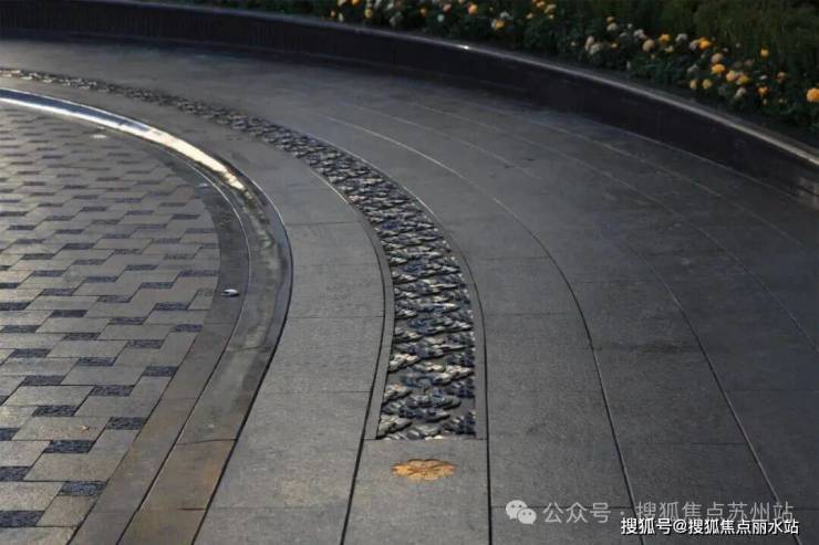 拼花铺装将海派美学与非遗工艺深度结合,纹样中暗藏上海市花 “玉兰” 的灵韵 —— 线条舒展如花冠绽放,与玉兰门庭的飞翼祥纹铜雕府门形成视觉呼应。同时,铺装纹样巧妙融入项目 logo 元素,以精致构图实现文化表达与标识识别的双重功能。