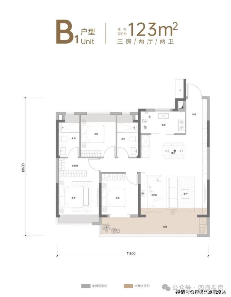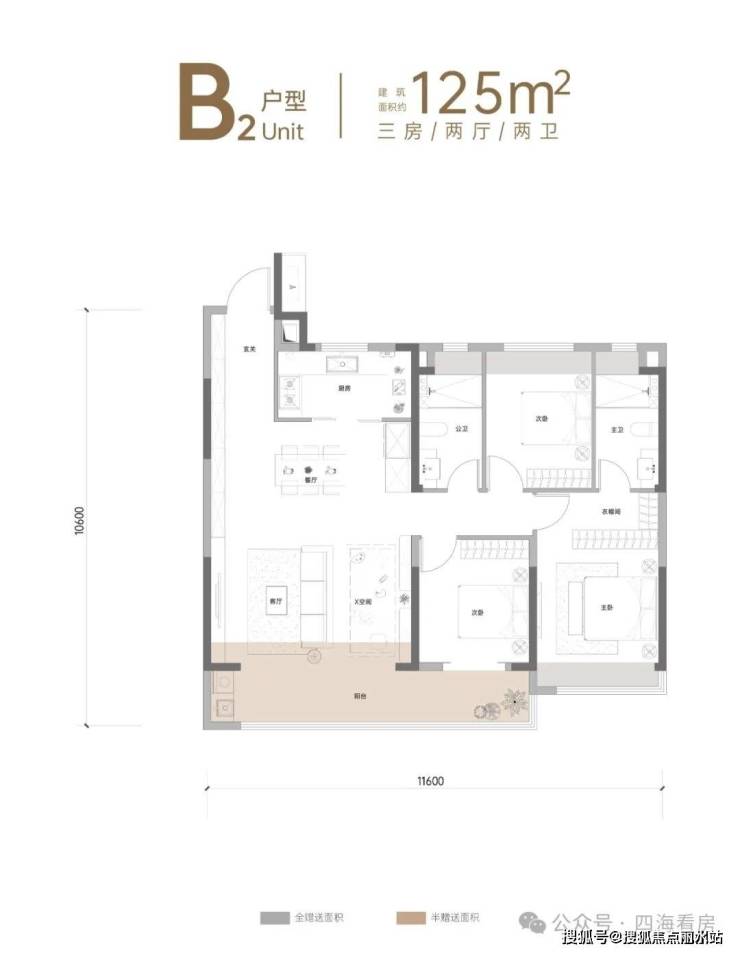 首开建面约125㎡3+1房2厅2卫