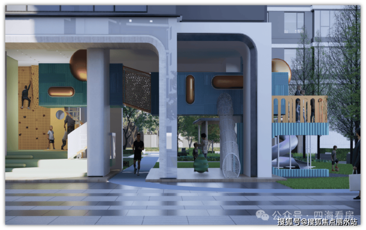 在2#、3#楼架空层配置高标准泛会所,通过仪式型共享客厅、全龄型儿童乐园、私教型运动空间等生活场景营造,让每位业主家人都能找到属于自己的社交互动圈子。