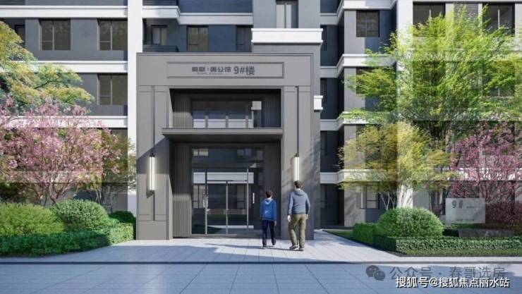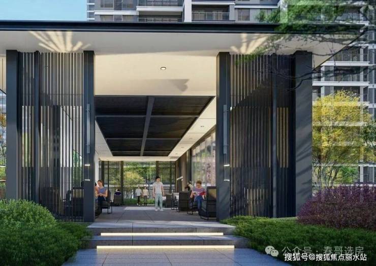 建筑风格:现代典雅、时尚大气,外立面采用灰色涂料和蓝灰色玻璃,简约气质,历久弥新