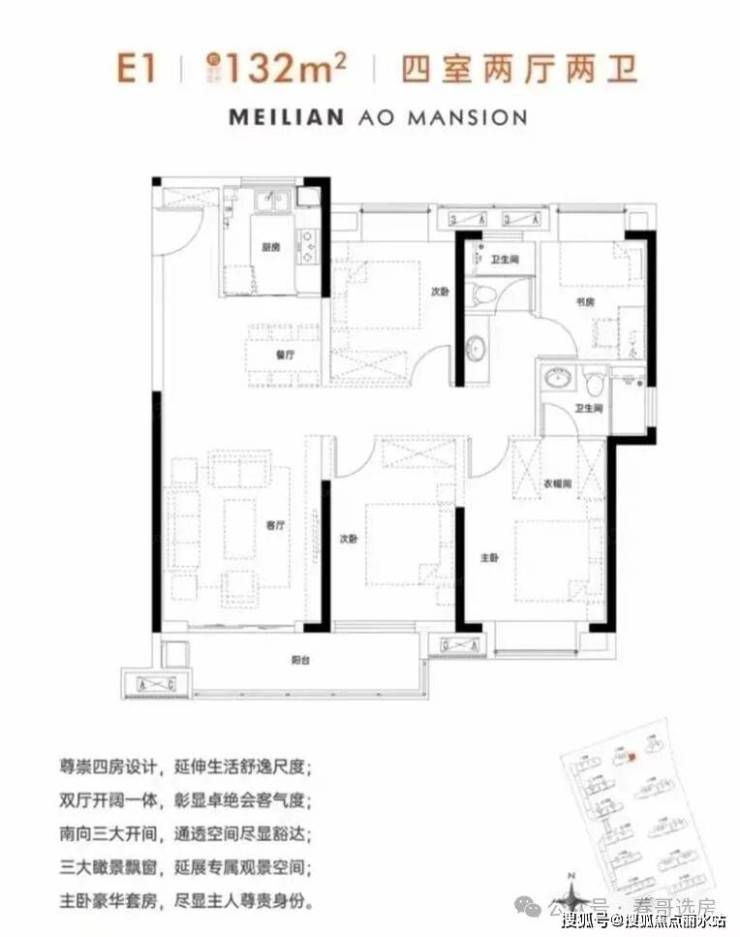 建面约132㎡的4房2厅2卫