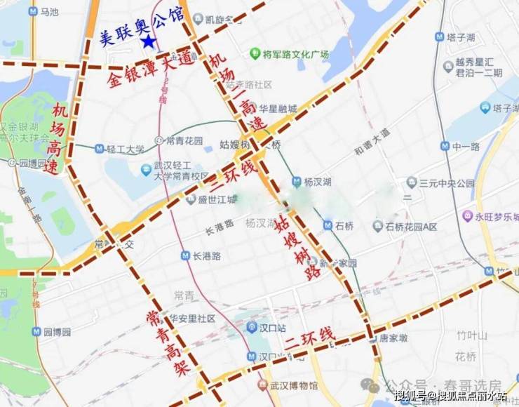 地铁与公交:项目地块就挨着2号线金银潭站,步行过去几分钟,2号线1站路到常青花园可以与6号线换乘,4站路可在范湖与3号线换乘,5站路可在王家墩与7号线换乘。