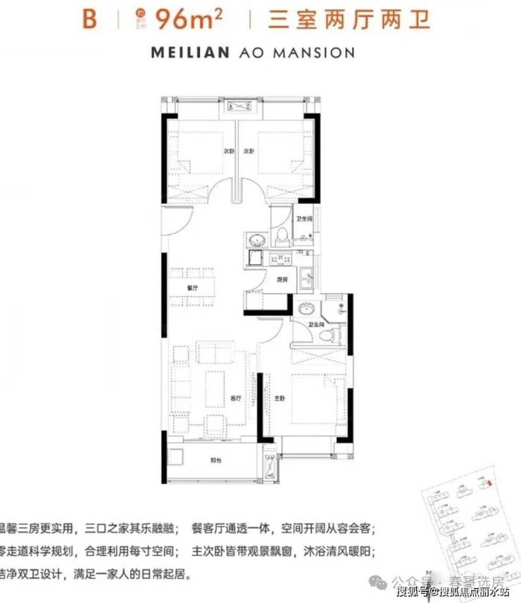建面约96㎡的3房2厅2卫