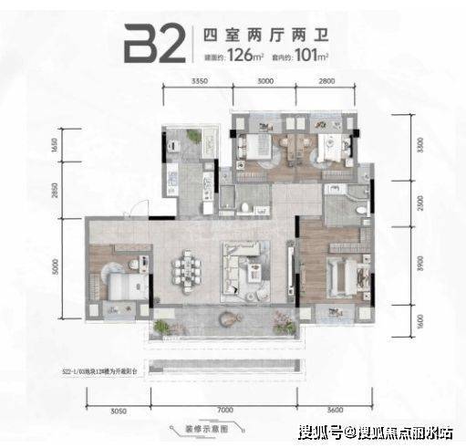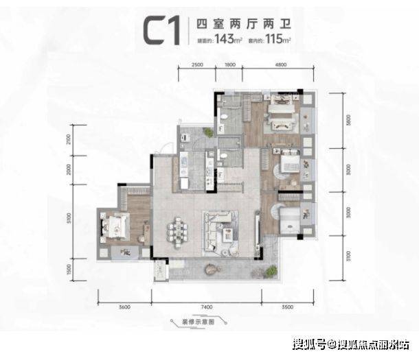 125㎡四房:户型开阔,南北通透,适合大家庭居住