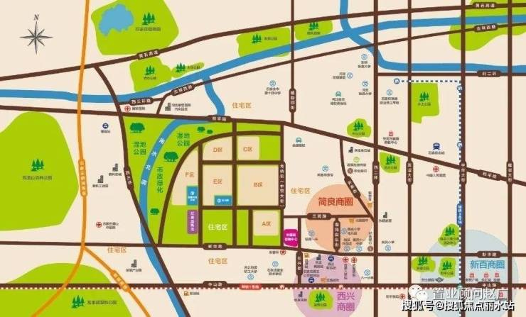 4.商业:综合商场北国超市、保龙仓超市、东明家具城、桥西蔬菜批发市场