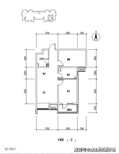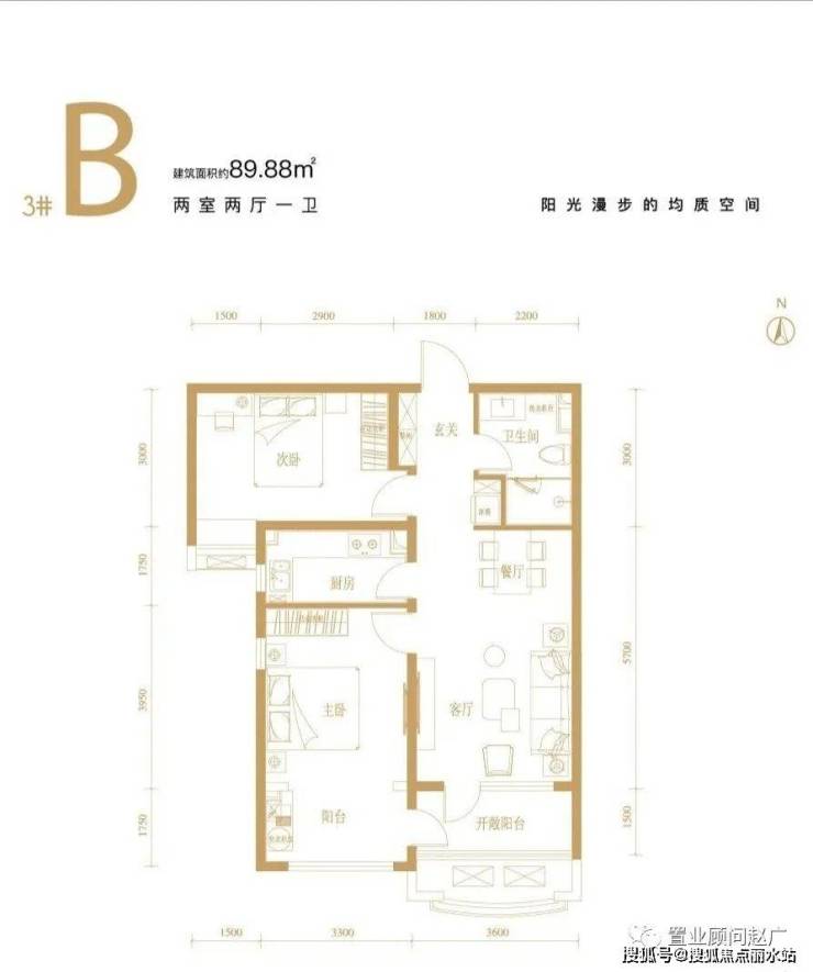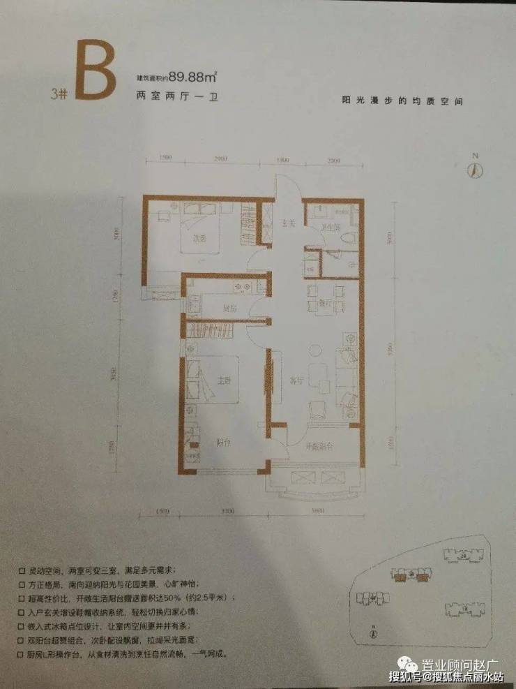 D4两梯三户,两室两厅一卫,约88平米《上图》