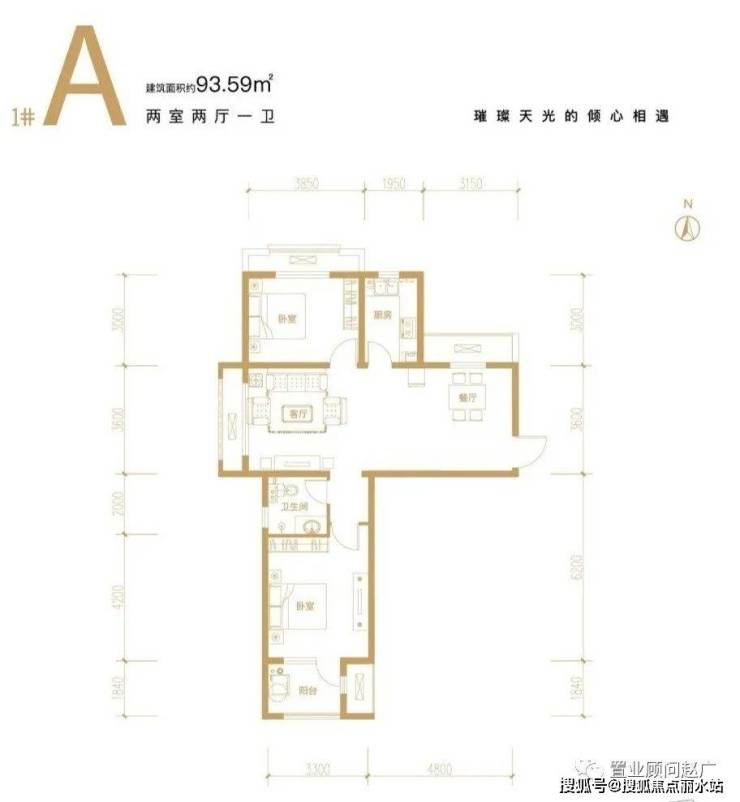 D4两梯三户,两室两厅一卫,约90平米《上图》