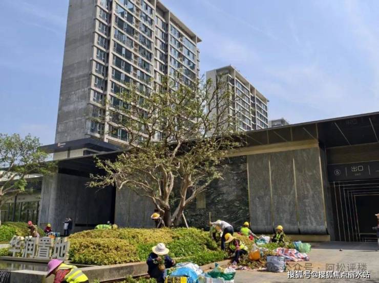 目前社区已经在进行园林的耕种了,大门外也有很多工人进行施工,进度很快