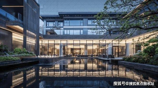 山水入画营造下沉式中央庭院,约12米飞流星瀑,臻选蓝翡翠奢石打造银河水境,百年丛生乌桕封藏四季风景,邀山水融自然,一方东方禅意画境