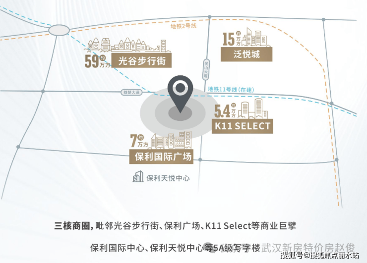 【交通】地铁上盖,享“三轨一快”立体路网 多轨道:地铁11号线(在建,地铁上盖),地铁2号线,地铁29号线(规划)有轨电车:有轨电车T1线城市快速公交:雄楚大道BRT快速公交公交:301、327、510、715、755、757、903等数十条公交车可直达本项目。