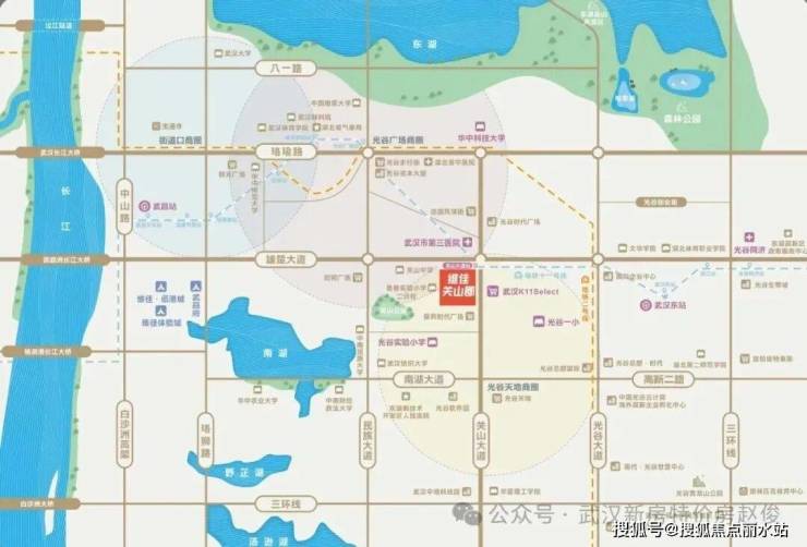 【商圈】百万方高端商业体,出门即商圈 华中首家K11艺术购物中心、保利广场、泛悦城、光谷天地、光谷步行街商圈近在咫尺。项目2公里范围内聚集超百万方高端商业体,出门即是商圈,商业氛围浓厚。维佳·关山郡也配备了部分配套商业,与关山大道商圈氛围相得益彰。