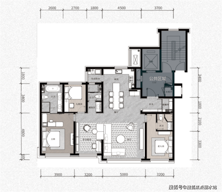 南向四面宽超过15米,除了双卧室套房和一个开间达5米的方厅,多功能空间可以自由改造成为卧室、茶室、影音室、健身房、瑜伽馆, 满足老人、孩子、男女主人以及宠物的生活需求 ,还可以根据家庭结构的变化随时进行分割或是连接,轻松容纳三代同堂、二孩家庭的生活。