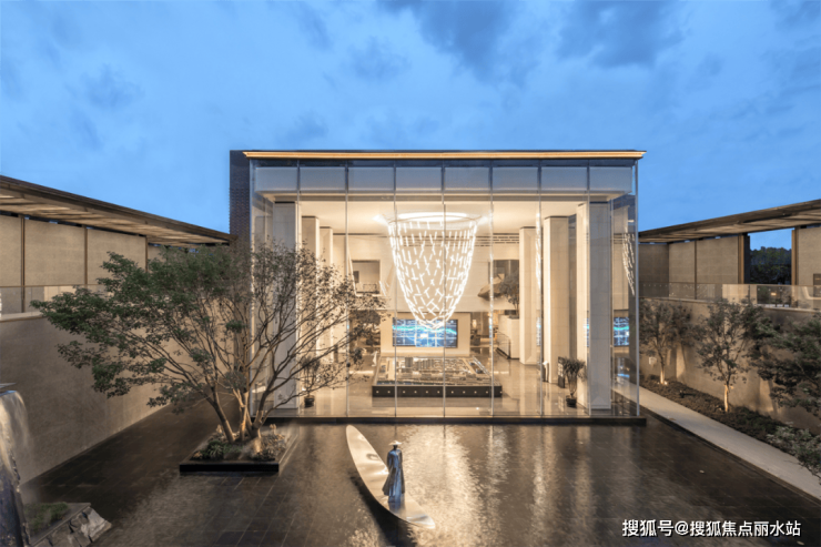 当你迫不及待地走上前去仔细观瞧,所收获的惊喜与震撼远不止于此。超50米宽的气派大门,直接将归家的仪式感拉满。走进大门,借鉴了故宫“御道”设计理念的中轴步道两侧,迎客黑松相对而立,有着梦幻视觉效果的光影景墙、非遗匠人亲制的陶土砖墙……一砖一瓦都在诉说这座城市深厚的历史底蕴和文化肌理。