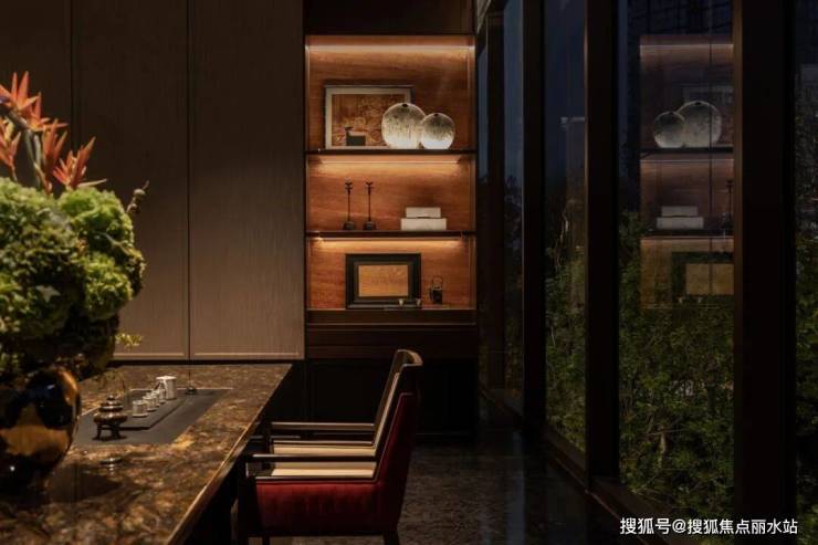 再过来便是茶室,饭后的时光必定更加惬意。自然的绿意透过玻璃映入室内,与古朴装饰相得益彰。品一杯香茗,让时间在茶香中慢慢流淌。