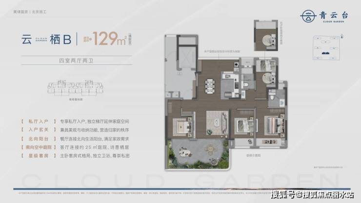 云宸·四房129㎡客厅联通25㎡空中庭院,四室两卫210万–250万在售