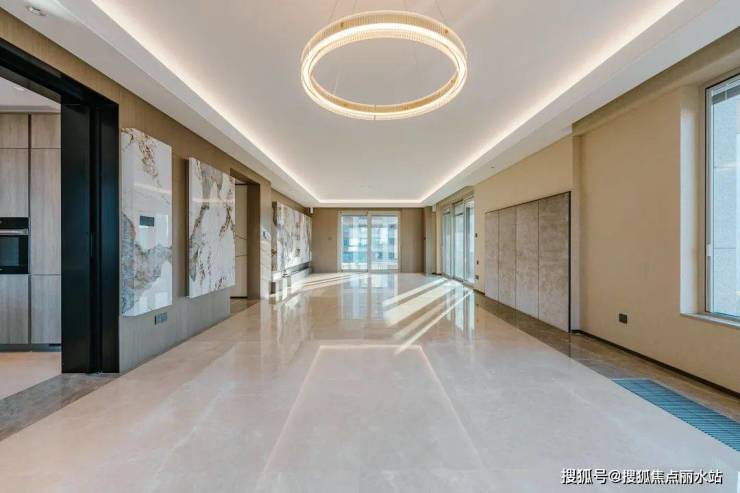 客餐厅室内层高3.3米,大横厅,三面开窗的客餐厅光面积就有近60㎡,270°的L型阳台;