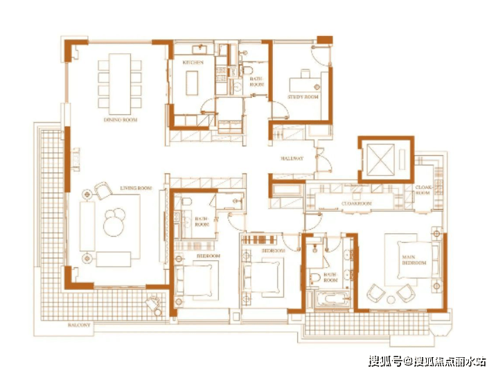 1、中国府这套286.57㎡为四房两厅三卫,位于中高楼层(总层高29层),其中: