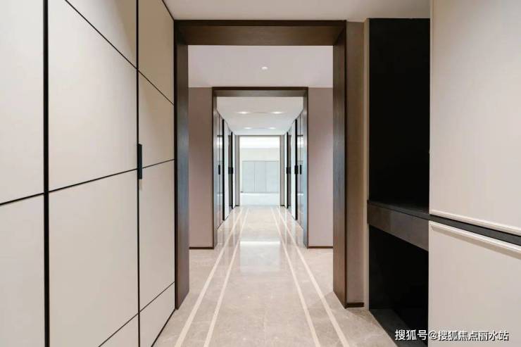 建面约286.57㎡户型进入户门后,两侧都配以玄关柜,分设双面男女士鞋柜、梳妆镜,各式鞋子都能摆放进其中。↓↓