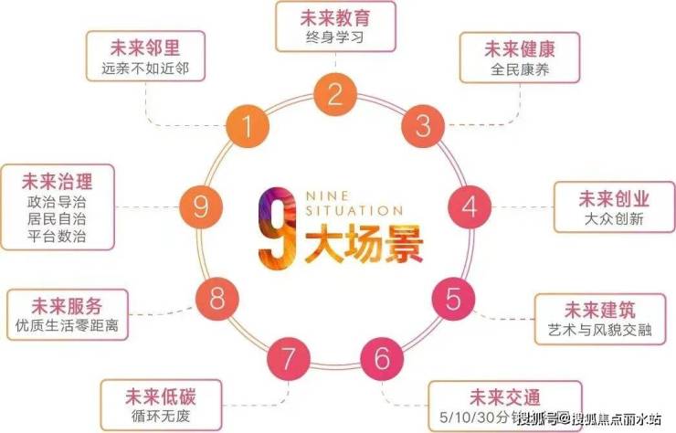 融合未来邻里、教育、健康、创业、建筑、交通、低碳、服务和治理九大场景▼