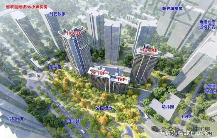 汉阳城更·花木深项目共包含3栋住宅,其中1号楼总高33层,为7字形拐角布局,2号楼包含2个单元,总高分别为16F、18F,首层均为架空层,3号楼总高29层,1个单元,首层架空。