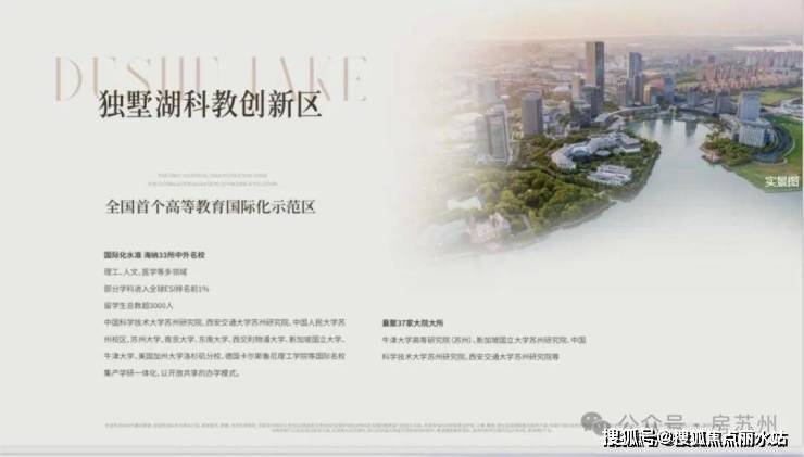 园区之上,双湖为王,独墅湖科教创新区的规划,以高起点、高标准的定位,逐步成为苏州的“创新之核”和现代城市副中心。这里集聚60位院士、5000家科创企业,每年诞生超500项专利,云集15家高端科研院所,33所中外名校荟萃,38家上市企业熠熠生辉;60位院士领衔,万千精英汇聚,激荡创新浪潮。