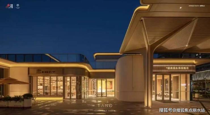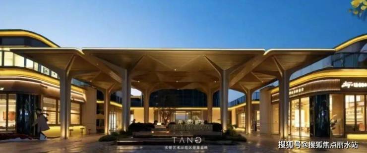 项目立面采用大面积玻璃,顶部配有“琉璃云冠”,自带强烈通透感,还大量使用香槟金色横向线条,赋予建筑一种尊贵气质。