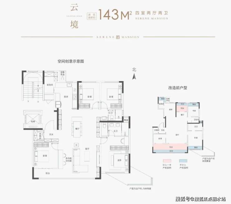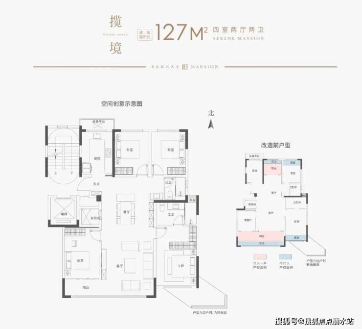 纯改善项目,最小面积127四房起步,户型得房率均在100%以上,主力面积段为143的四房。顶层结合坡屋顶和户内挑空打造复试产品,顶复面积段160-240。