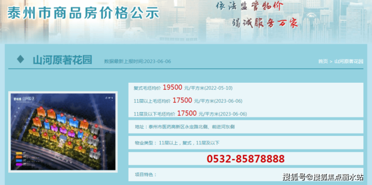 2023年6月6日,泰州市商品房价格公示网公示了城南板块-山河原著花园(推广名:碧桂园·山河原著)7#、16#、20#、21#,4栋住宅产品的备案价格,共274套房源,户型面积约㎡,均为毛坯交付。