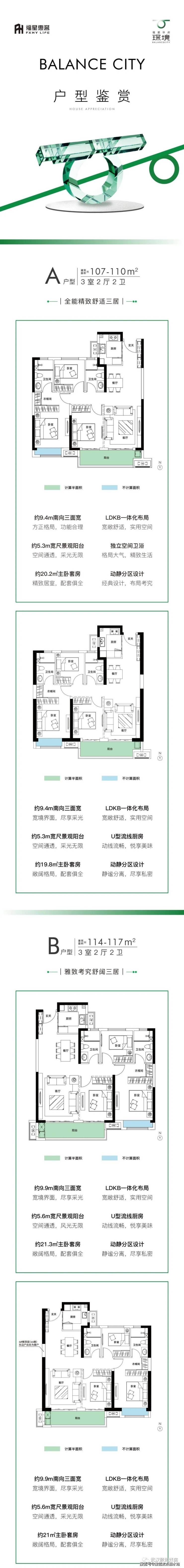 户型:107-142m²全能三/四房