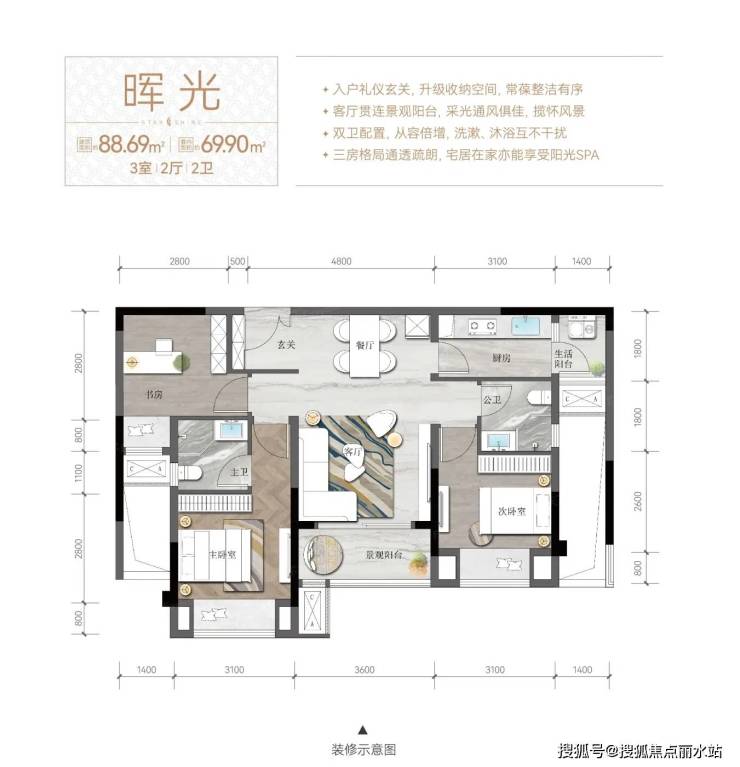 中建壹品南滨星光城 平层户型·建面/88㎡