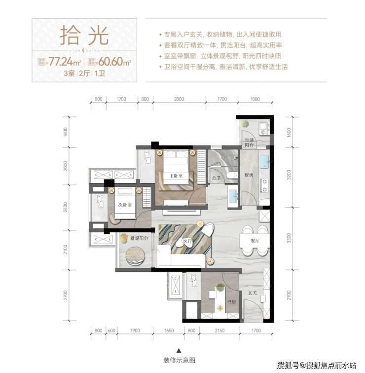 中建壹品南滨星光城 平层户型·建面/77㎡