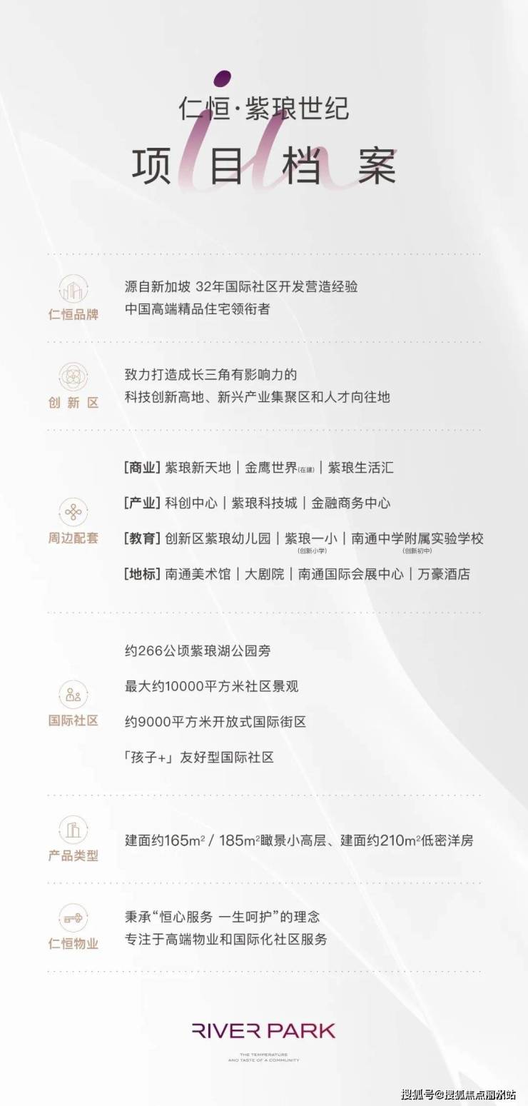 仁恒紫琅世纪是世纪系全新迭代的第六代国际社区,在户型、装标、外立面,景观绿化等全方位升级。紫琅世纪户型165mi起步,密度更低,居住舒适度更高,仅421户私人名邸,物业服务更精细化,定位中创核心区域高端纯改善项目,为南通顶级圈层定制的高品质住区,百万买房,千万买邻,在当今社会阶层分化的背景下,紫琅世纪为您筛选志同道合的高品位邻居。项目整体为公建化外立面,采用浅香槟金色保温装饰一体板搭配铝板、铝格栅、铜板、石材等材料,造价成本高,外观呈现出高品质金属质感,保温隔热性能更好。