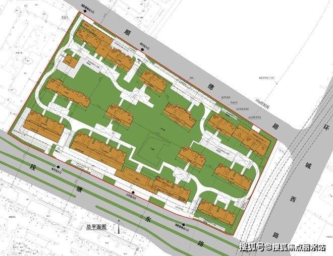 共享空间创新通过下沉式庭院打造社区公共活动核心,配合人车分流设计(主入口设于段塘东路,车行出入口分布于北侧及西南侧)显著提升居住安全性;
