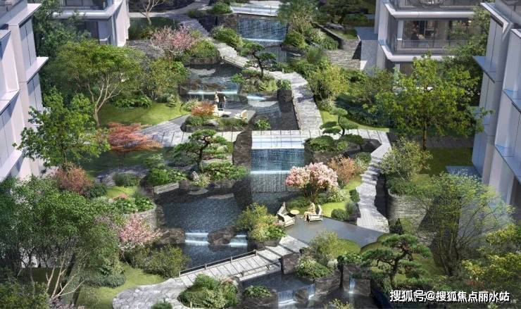 清晨的雾气笼罩水面时,水景与的青山融为一体,恍若水墨画中的留白;正午阳光洒在水面,波光与岸边的绿植相映,折射出细碎的光斑;傍晚华灯初上,灯光沿水岸次第亮起,泉水叮咚声与远处的虫鸣交织,成了自然的催眠曲。住在这里的人,不必远行便能体验 "人在园中游,园在山水中"的意境。