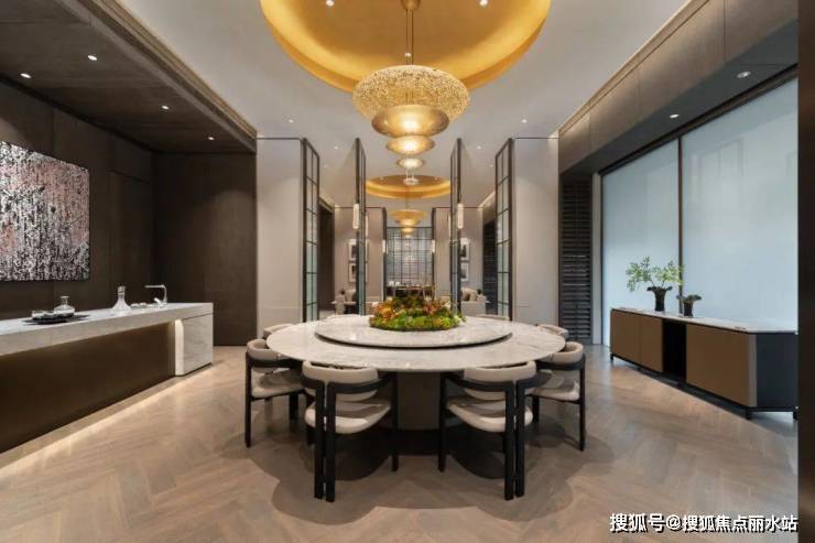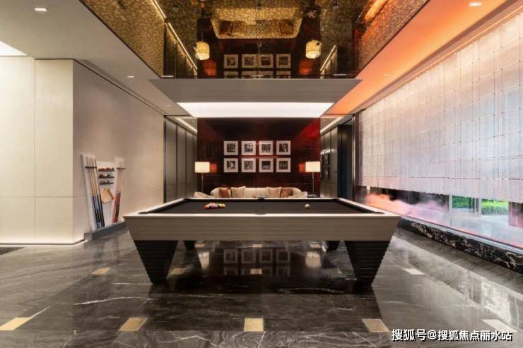 在地下1层,能容纳30人同时就餐的双私宴厅,约25m*8.1m的“类无边”恒温泳池,约240㎡的专业健身房等,环绕着一座以“水院林屿”为主题的下沉式庭院。