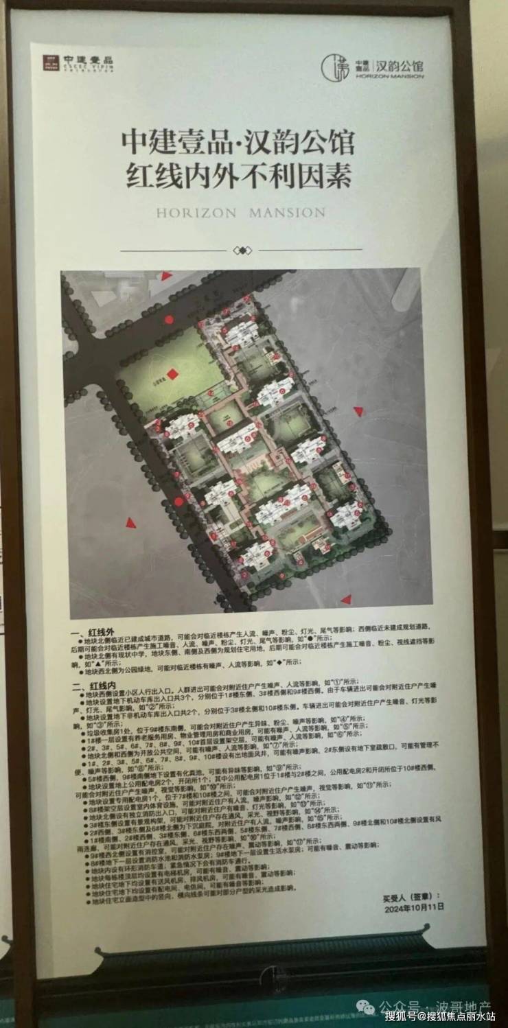 项目现场有不利因素展示,部分楼栋临近配电房及地下车库入口、及周边待建区域等均有展示,对实际居住会存在一定影响,现场购房注意楼栋位置及朝向。