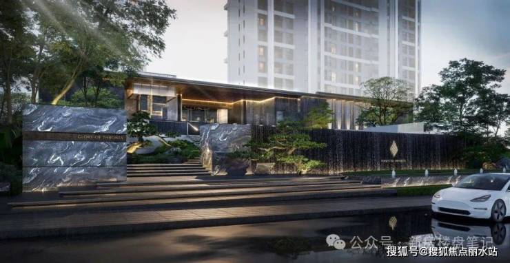立面采用国际豪宅建筑的精奢风格,致敬顶级珠宝卡地亚的奢华美学,以“直线条和玻璃幕”构建现代美学。