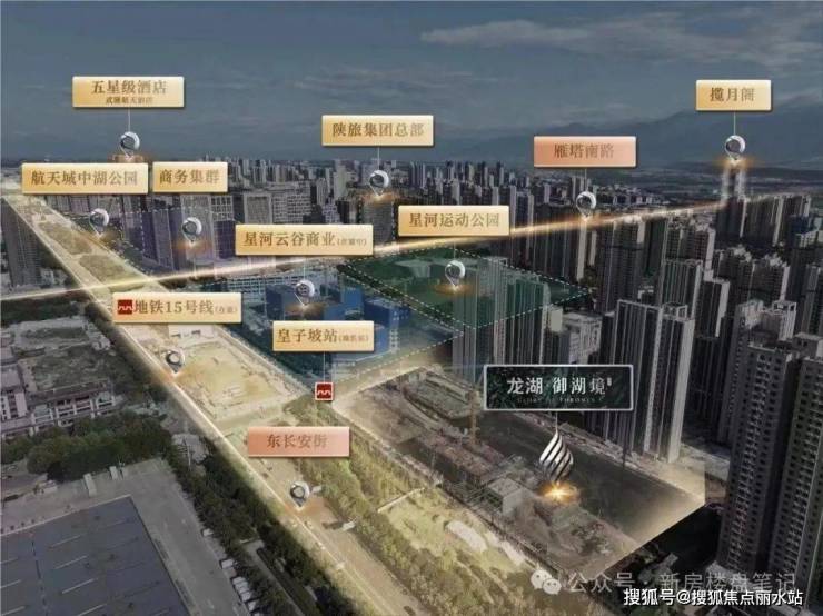 御湖境项目就位于经济中轴东长安街和历史中轴雁塔南路交汇处西南处,既占据了航天发展总部经济带,也处在世遗中轴文脉中心上,是航天一期寸土寸金的中央核心首善区。